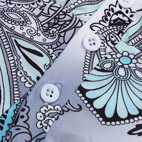 Goddessvan Women's Printed Long Sleeve Henley Pleated Tops Casual Flare Tunic Blouse Shirt (L, White-2), womens
