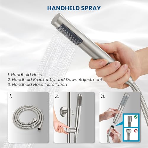 • gotonovo Outdoor Shower Fixtures SUS304 Stainless Steel Rain Shower Kit Faucet High Pressure Wall Mount 2 Dual Function 8 Inch Showerhead and Handheld Spray Combo, Single Handle, Brushed Nickel