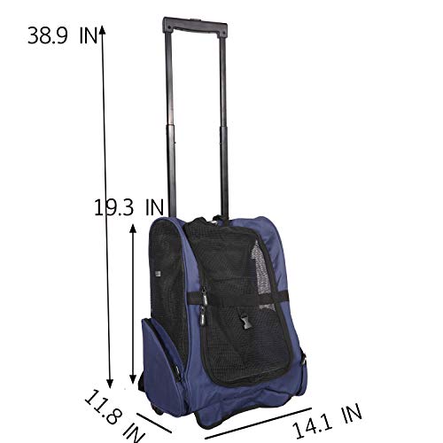 • Pet Rolling Carrier Backpack Wheel Around 4-in-1 Pet Travel Carrier,Airline Approve Dog Carrier for Small Pet for Indoor & Outdoor Use (19" L x 14" W x 12" H, Dark Blue)