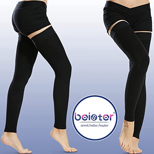 • Beister Thigh High Footless Compression Sleeves with Silicone Band for Women & Men, Firm 20-30 mmHg Graduated Support