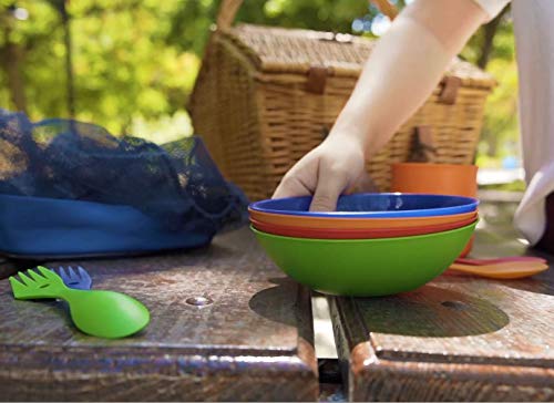 Wealers Camping Mess Kit, 16-Piece Dinnerware Set with Sporks, Plates, Bowls and Mugs, 4 Person Backpacking Lunch Gear with Mesh Travel Bag, 4 Colors, BPA Free Tableware, Red, Green, Orange, Blue