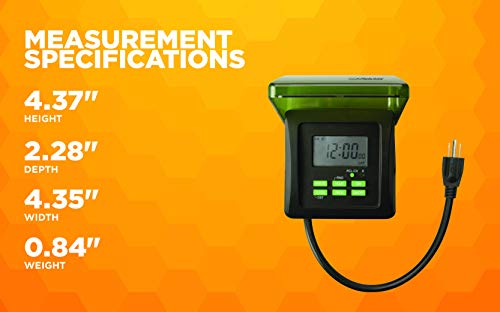 The Woods 50015WD Outdoor 7-Day Heavy Duty Digital Outlet Timer is precise and versatile. It has up to 20 different settings per day, weekday/weekend settings, random settings, and countdown settings. There's also a manual override button. It's specifically made to be used outdoors in all weather conditions so you can use it worry free, rain or shine. With ¾ horsepower, It's perfect for heavy duty appliances such as pumps or heaters, but It's also great for landscape, security, or holiday lighting.
