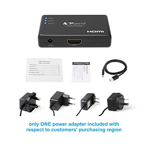 • HDMI Splitter 1 in 2 Out 4K, PORTTA HDMI Amplifier Splitter 1x2 Dual Display, 2 Port HDMI Splitter Support 4K 30hz 1080P 3D for PS4 Xbox Roku Blu-Ray Player Monitor Projector HDTV