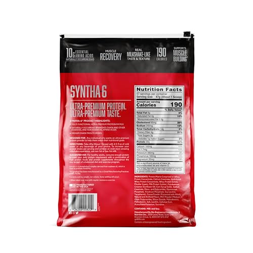 • BSN SYNTHA-6 Whey Protein Powder with Micellar Casein, Chocolate Milk Protein Isolate Powder, Chocolate Milkshake, 97 Servings (Package May Vary)