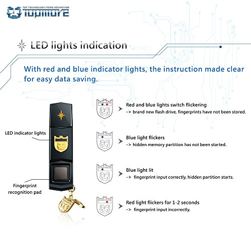 • TOPMORE Phecda Fingerprint Recognition USB3.0 Flash Drive Fingerprint ID Security Flash Disk Biometric Fingerprint Reader Memory Stick (128GB, Black & Gold)