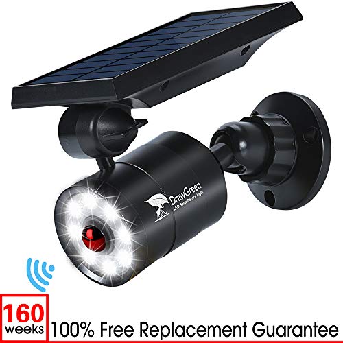 DrawGreen Solar Motion Lights Outdoor 1400-Lumen LED Spotlight 9-Watt(130W Equ.) Solar Flood Security Lights for Garden Driveway Patio Yard Path Porch Deck, 100-Week 100% Free Replacement, Black, solar motion sensor light outdoor