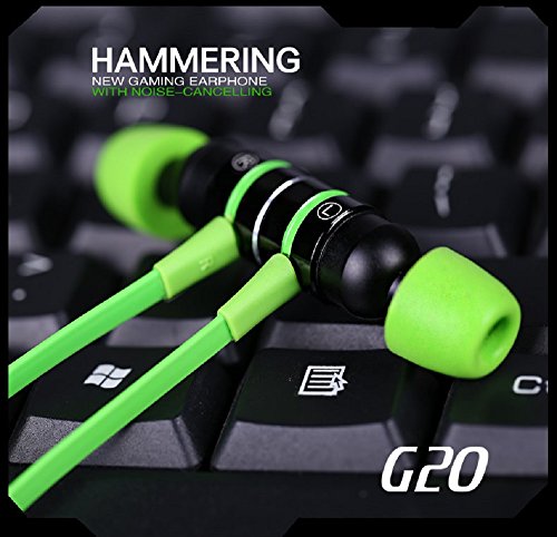 • GranVela G20 Wired Gaming Earbuds,HD Sound Hammering Bass Noise Isolation in Ear Gaming Headphones with Mic,3.5mm Jack and Y Splitter for PC, Xbox and PS4. Cable Length 2.2M. (Green)