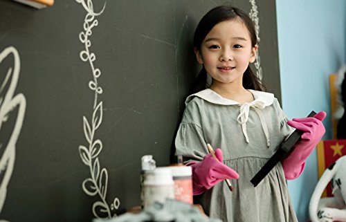 Myungjin Kids Latex Household Natural Rubber Waterproof Work Playing Hand Protection Washing Cleaning Gardening Painting Gloves (Pink), 2 Count (Pack of 1)