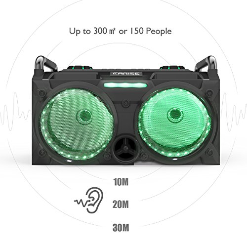 • EARISE DT60-E Portable PA System Bluetooth Speaker with Wireless Microphone, Rechargeable Karaoke Speaker with FM Radio, DJ Party LED Light, 2 X 5.25” Subwoofer, Remote Control, AUX/MicroSD/USB/NFC