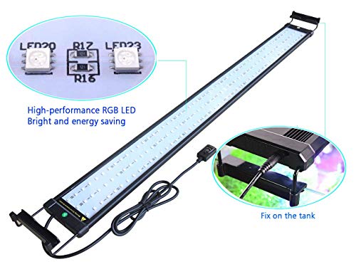 COODIA Aquarium Hood Lighting Color Changing Remote Controlled Dimmable LED Light for Aquarium/Fish Tank (36"--45")