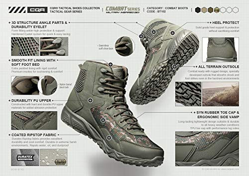 • CQR Men's Military Tactical Boots, Lightweight 6 Inches Combat Boots, Durable EDC Outdoor Work Boots, No Zip Anthracite, 9.5