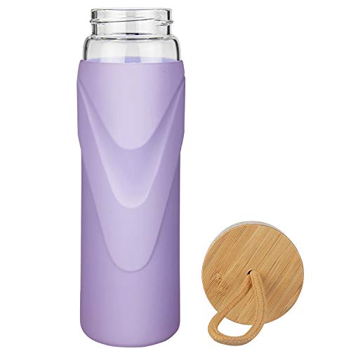 • Origin - Best WIDEMOUTH BPA-Free Glass Water Bottle With Protective Silicone Sleeve and Bamboo Lid - Dishwasher Safe - (Lavender, 24 Ounce)