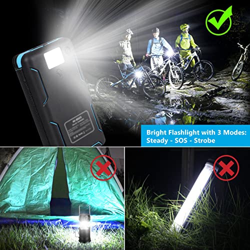 • Solar Charger 25000mAh Power Bank, Hiluckey Portable Phone Charger with 4 Solar Panels USB Power Bank with Flashlight External Battery Pack for iPhone Galaxy