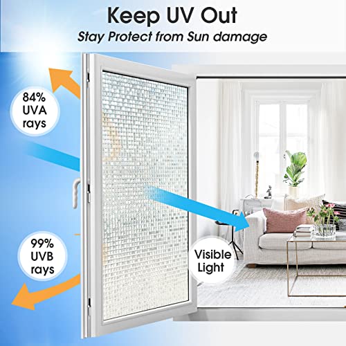 Coavas Rainbow Window Film Stained Glass: Translucent Mosaic Window Privacy Film Removable Sun Blocking Window Stickers 3D Decorative Window Clings for Home Heat Control Anti UV, 17.7 x 78.7 Inch, Crystal