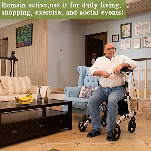 • BEYOUR WALKER Upright Walker, Stand Up Rollator Walker Tall Rolling Mobility Walking Aid with 10” Front Wheels, Seat and Armrest for Seniors and Adults, White