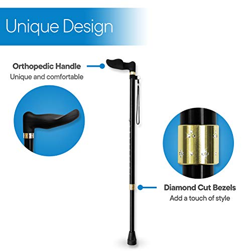 RMS Left Hand Walking Cane with Palm Grip Orthopedic Handle - Fit Individual's Palm Naturally - Ideal for Arthritis or Carpal Tunnel Syndrome, black, Left-Handed Orthopedic Handle