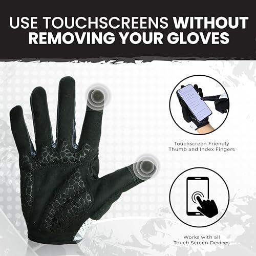 LuxoBike Bike Gloves for Men Women with Anti-Slip Shock-Absorbing Riding Pad, Light Weight Full Finger Cycling Gloves Touch Screen Breathable Mountain Biking Road Bicycle, Black - Full finger, Large
