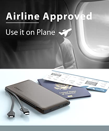 • 10000mAh Built in Cables Power Bank, 10000 Built in TYPE C Cords External Portable Battery Charger for Cell Phone,Type C (Input & Output) Battery Pack Compatible with iPhone and Samsung, Deep Brown