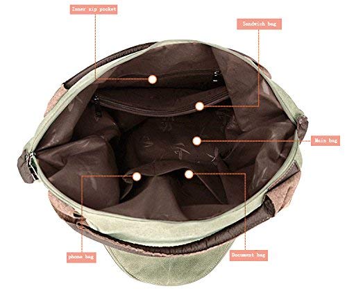 • xiaoxiongmao Large Pocket Casual Women's Shoulder Cross body Handbags Canvas Leather Bags (One Size, Army green)