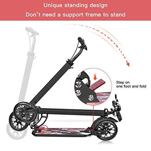 besrey Kick Scooter for Adults/Teens with Hand Brake 220 lbs Max Load, Foldable Kick Scooter with 200mm Big Wheels and Shoulder Strap for Age 8 Year Up, Black