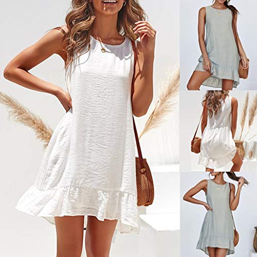 Toponly Dress For Women 2019 Toponly Women's Casual Beach Summer Mini Dresses Solid Halter Sleeveless Flattering A-Line Spaghetti Strap Sundress, White