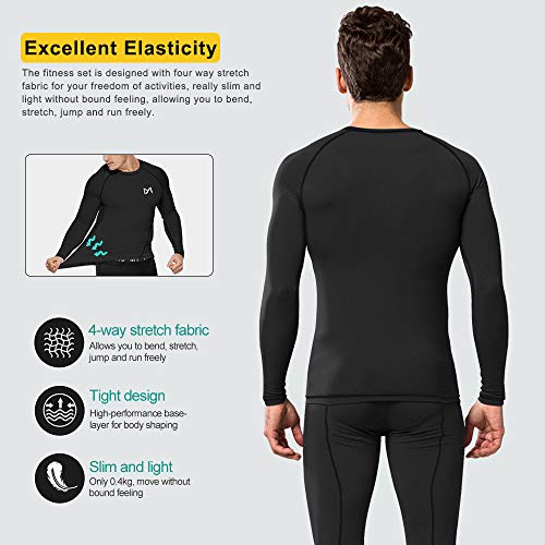 MEETYOO Men's Sport Base Layer Set, Mesh-Side Cool Dry Workout Fitness Long Sleeves Shirt and Pants, Compression Long Johns Underwear, Black-mesh, Medium