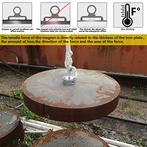 • Fishing Magnet Double Sided, 600lbs Pulling Force Super Strong Round Rare Earth Neodymium Magnet, Heavy Duty Rope & Non-Slip Gloves for Magnetic Fishing, River, Salvage, 2.36” Diameter