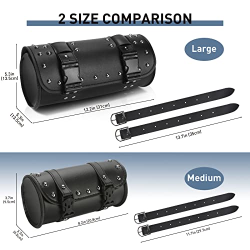 SUHU Motorcycle Handlebar Bag, Motorcycle Fork Tool Bag Motorcycle Tool Bag PU Leather Black Universal for Motorcycle Front Forks Handlebar Sissybar Storage Bag With 2 Straps, 21*11*11CM