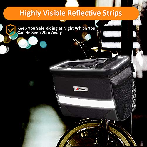 SPORUS Bike Basket with Thickened Thermal Aluminum Foil and Waterproof Phone Pouch, Large Capacity Bike Handlebar Bag with Water Bottle Pouch & Reflective Stripes [Dark Grey]