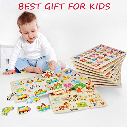 • 8PACK Wooden Peg Puzzles for Toddlers, Kids Puzzles Set - Letters, Numbers, Animals, Vehicles, Ocean, Vegetables, Fruits and Farm,Educational Learning Toys for Girls & Boys.