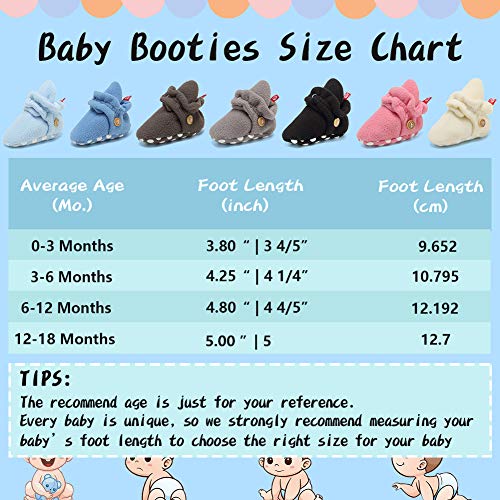 • Newborn Baby Soft Fleece Booties Infant Boy Girl Cozy Socks with Non Skid Gripper Stay On Slippers Toddler First Walkers Winter Ankle Crib Shoes First Birthday Shower Gift U619WNKXBX,Aque,12