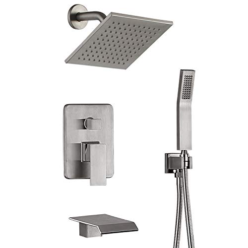 Genhiyar Shower Faucet Set Rain Showerhead Handheld Shower Waterfall Bathtub Spout Included Nickel Brushed Black Multi Function ALL BRASS Shower Fixtures (Nickel Brushed)