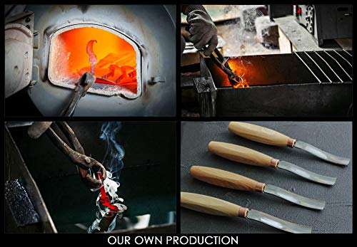 • BeaverCraft Wood Spoon Carving Gouge Compact Chisel K6L/15 Wood Carving Tools Bowl Carving Carbon Steel Blade Wood Handle Radial Gouge Knife Hard and Soft Woods Compact Bent Gouge