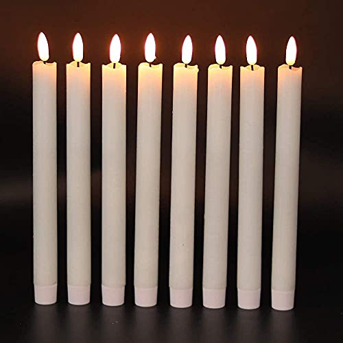 • GenSwin Flameless Flickering Taper Candles with 2 Remote Controls and Timer, Real Wax 3D Wick Light Window Candles Battery Operated Pack of 8, Christmas Home Wedding Decor(White, 0.78 X 9.64 Inch)