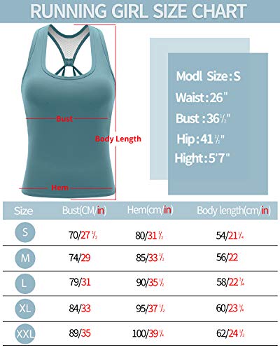 • RUNNING GIRL Yoga Tank Tops for Women Built in Shelf Bra B/C Cups Strappy Back Activewear Workout Compression Tops (BX2356 Blue, CN:L,US:M)