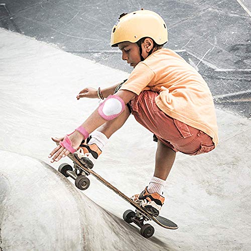 CRZKO Knee Pads for Kids,Kids Knee Pads and Elbow Pads Set Child Youth 3-15 Years W/Adjustable Strap for Roller Skates Skateboard Inline Skatings Scooter, PINK, M(8-15Years or 44-77lbs)