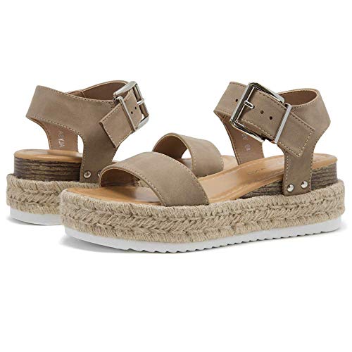 • Shoe Land Alysa Womens Open Toe Ankle Strap Platform Wedge Shoes Casual Espadrilles Trim Flatform Studded Wedge Sandals Natural 8.0