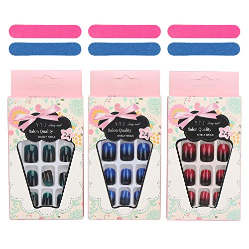 • 72pcs False Nails Set, Segbeauty Full Cover Manicure Fake Nails Tips Red Blue Green Gradient Glitter Artificial Nails Starter DIY Kit with 6pcs Nails File Sticks (NO Glue)