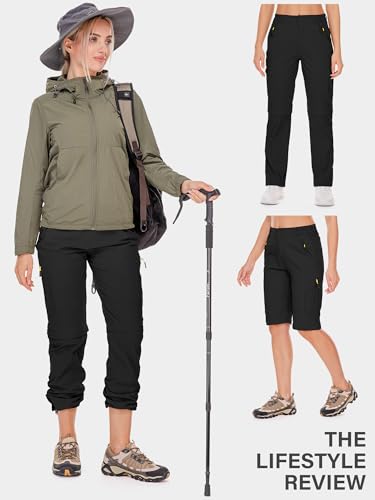 Toomett Hiking Pants for Women Convertible Quick Dry Stretch Lightweight Outdoor Fishing Safari Cargo Pants, Black, 8