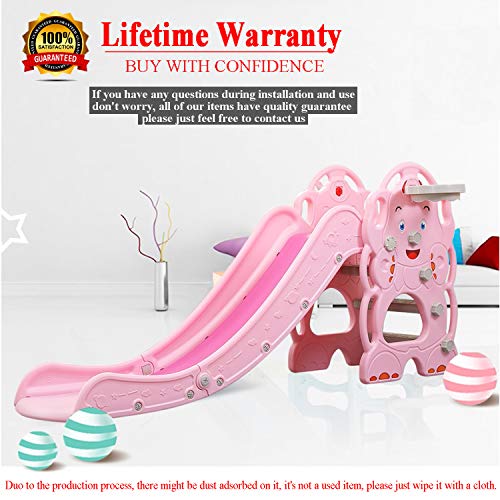 • Youen Toddler Climber Slide Toys Playset for 1-3 Years Old Boy & Girl Including Climbing Stairs, Sliding and Basketball Hoop for Indoor or Outside Games (Pink)