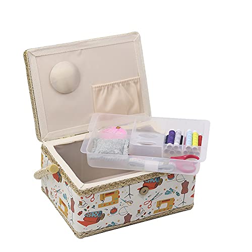 • Medium Sewing Basket with Accessories,Wooden Sewing Organizer Box for Sewing Supplies and DIY Crafting Tools Storage,Sewing Kit Tools for Sewing Mending (Beige)