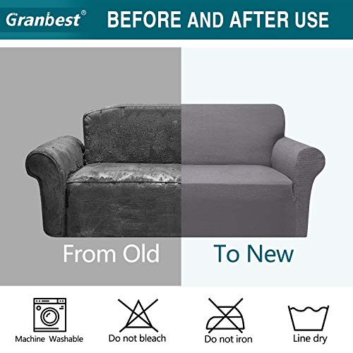 • Granbest Modern Couch Cover Stylish Pattern Sofa Covers for 3 Cushion Couch Durable Furniture Protector 1-Piece Sofa Slipcover with Non-Slip Foam Elastic Bottom(Large, Light Gray)