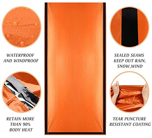 • EMERGENCY SURVIVAL KIT: 2 Pack Emergency Sleeping Bag & Tent, Lightweight Survival Thermal Bivy, Survival Gear for Camping, Hiking, Outdoor, Activities - 3-in-1 FIRESTARTER, COMPASS & WHISTLE