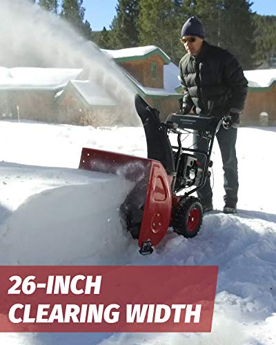 PowerSmart Snow Blower, 26-INCH 212cc Gas Snow Blower, 2-Stage Electric Start Gas Powered Snow Blower, 26-INCH Removal Width, Color Red and Black, PSS2260L-AM, 26"
