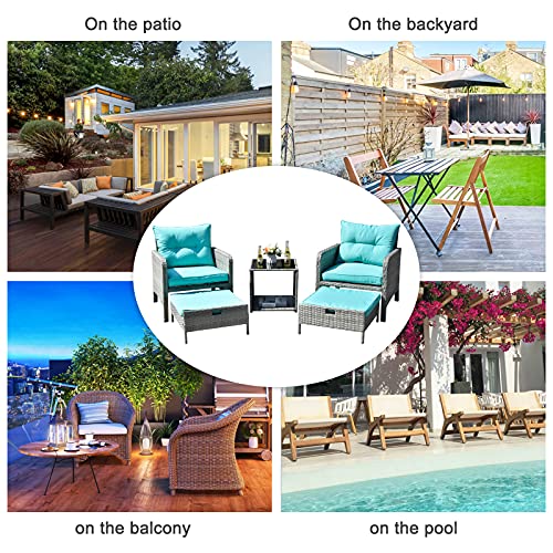 Apepro 5 Piece Patio Furniture Set Patio Conversation Sets, Outdoor Wicker Furniture with Ottoman, Outdoor Patio Chairs Furniture Wicker Patio Bistro Set for Backyard Pool Porch Deck Turquoise