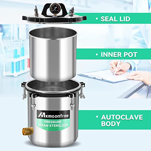 • Mxmoonfree 18L Lab Autoclave, High Pressure Steam Autoclave for Lab Equipment, Culture Medium, Glassware, Tatoo Instruments, Nail Tools 110V