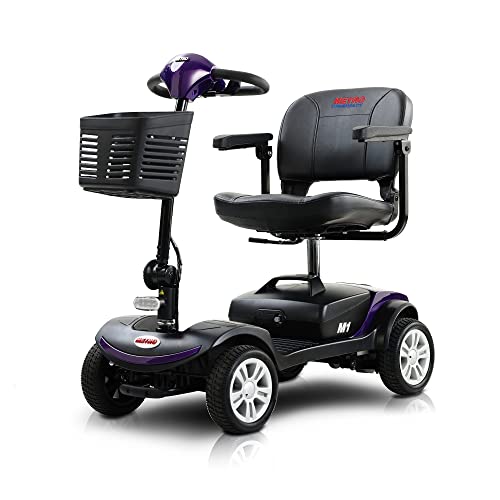• Electric Mobility Scooter with 4 Wheel, Electric Powered Wheelchair for Elderly Adults Travel, Compact Heavy Duty Mobile for Travel - Long Range Power Extended Battery with Charger and Basket(Purple)