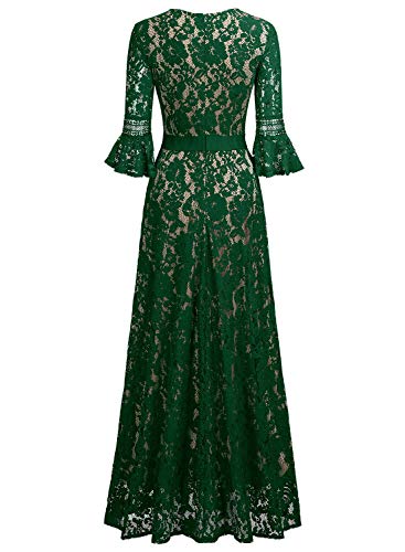 MISSMAY Women's Vintage Full Lace Contrast Bell Sleeve Formal Long Dress (XX-Large, C-Green)