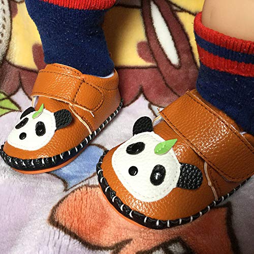 • LIDIANO Baby Non Slip Rubber Sole Cartoon First Walking Slippers Crib Shoes Newborn Infant Toddler Training Shoes (18-24 Months, Brown Panda)