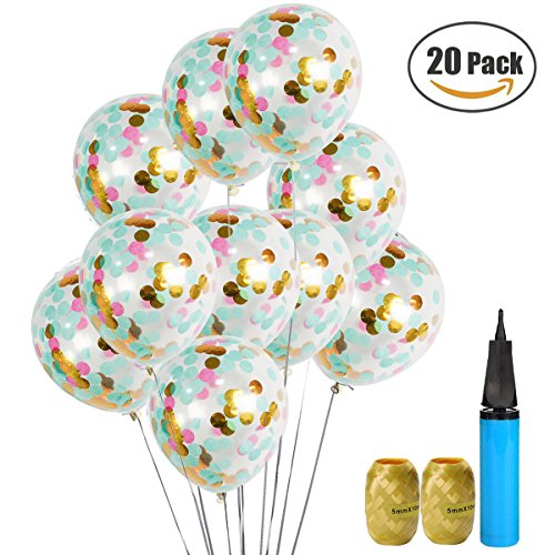 • UTOPP 20 Pack Confetti Balloons Tiffany Blue and Gold 12" Clear Balloons Aqua Blue Gold Confetti Party Supplies for Wedding Confession Bday Valentines Day Decorations with Air Pump and Tassels